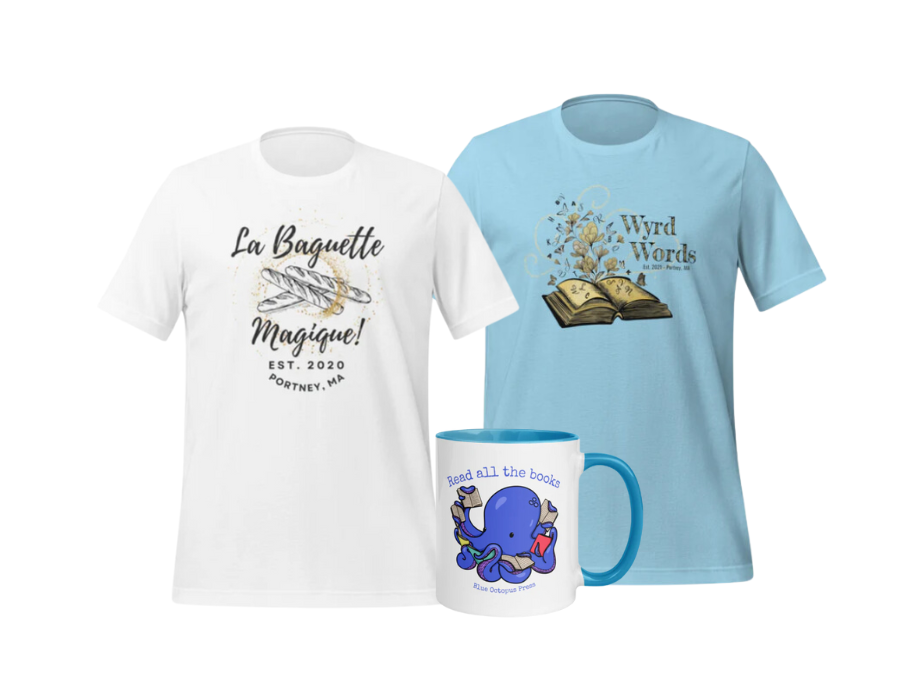 Bring a little fiction into your reality with T-shirts, mugs, stickers and other merch.